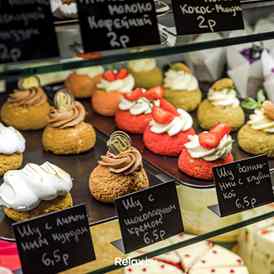 В новом заведении на витринах найдете большой ассортимент пирогов, включая наиболее популярные позиции. Что касается десертов, то здесь представлены абсолютные новинки, которые специально разработаны кондитерами для заведения.